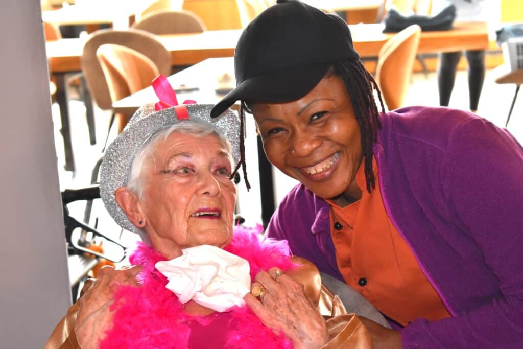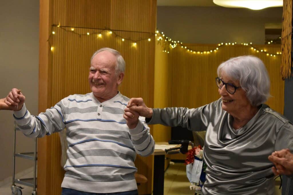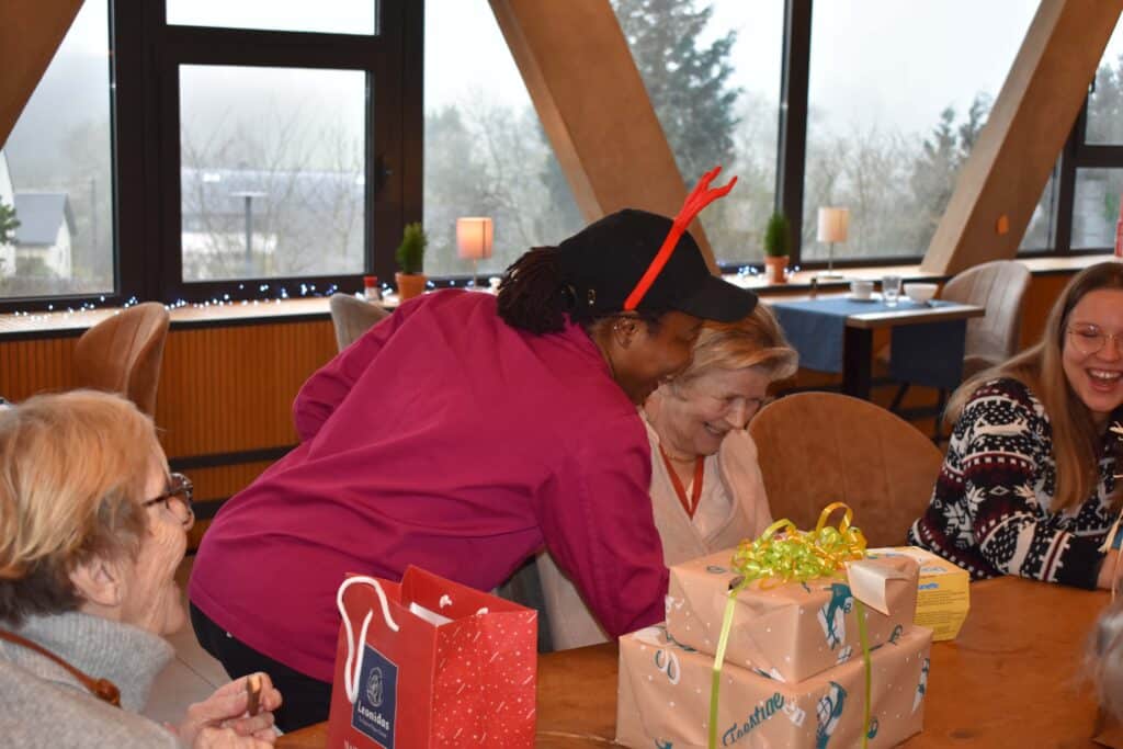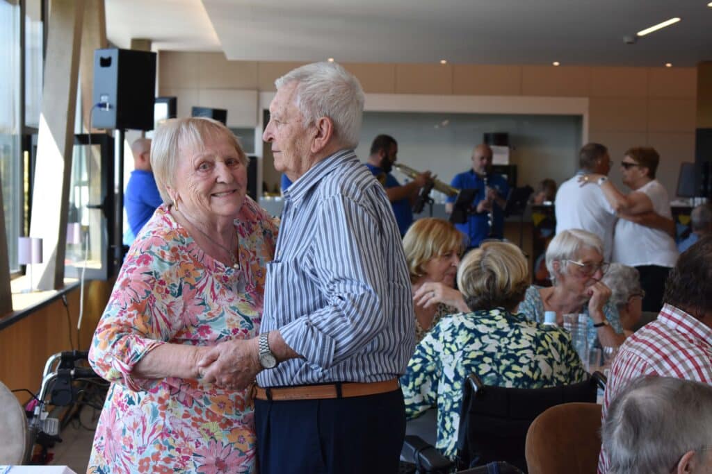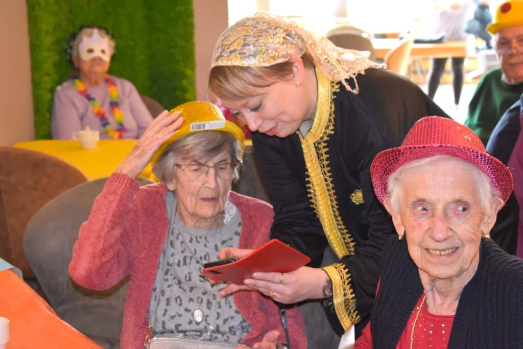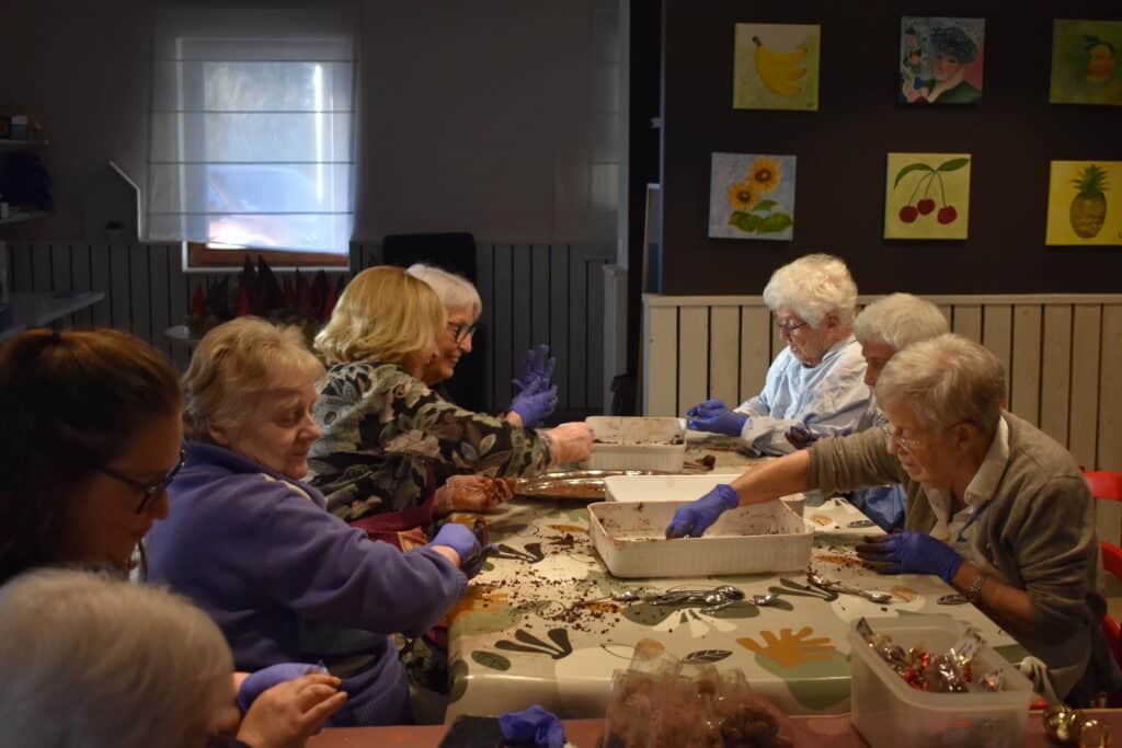 Nos résidents partagent des moments simples, remplis de bienveillance : un repas gourmand, une activité partagée, un rayon de soleil dans le parc.